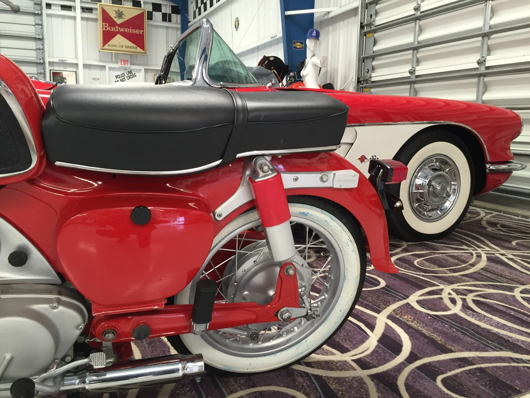 This 1966 Honda 305 Dream (CA77) Touring Bike went through a 2 year no expenses spared complete restoration! This example is basically a brand new '66 motorcycle. It has been driven very little since it's restoration. From the deep red paint finish to the chrome, motor and new original wide whites this gem is near flawless. It even came with the original Honda service - repair handbook and the Hondamatic warranty and service timetable booklet.